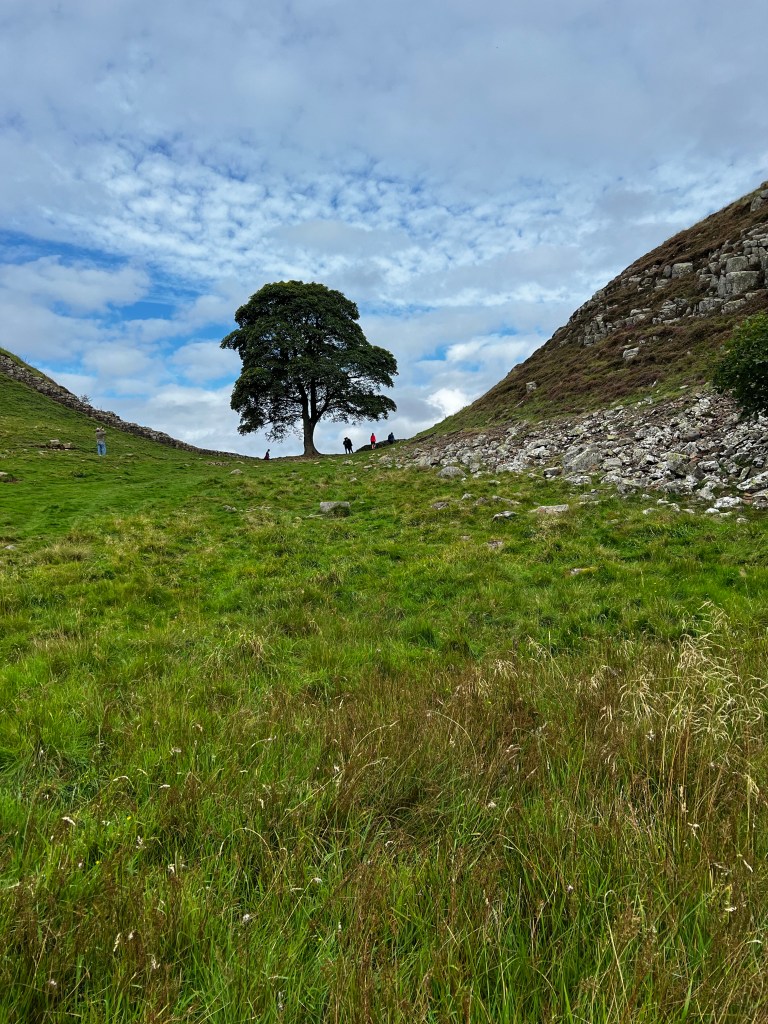 Well, further, along on day four, we did find the tree. The area is called “ the sycamore gap” and once again there were people mulling around taking pictures. People can take a short walk to these areas from the highway. They do this for some of the more spectacular spots on the wall. I will have to go back and watch the movie to have a closer look at the site, Robin Hood Prince of thieves that is.